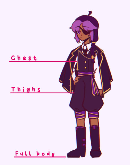 | Tell me what type of style you want (simple or rendered), if you want an emoji or normal (chest, thighs or full body) and send me the character and references (pose, clothing, etc). |
